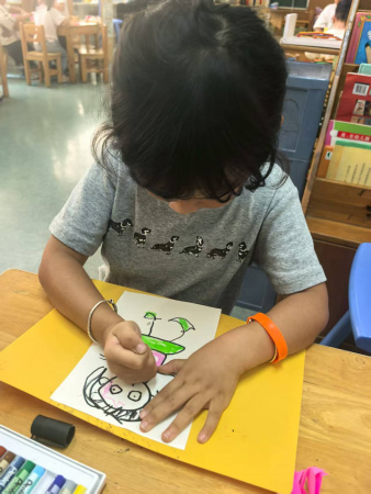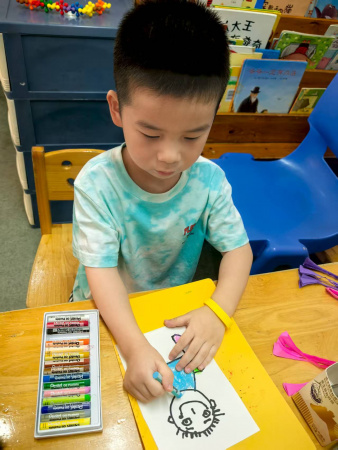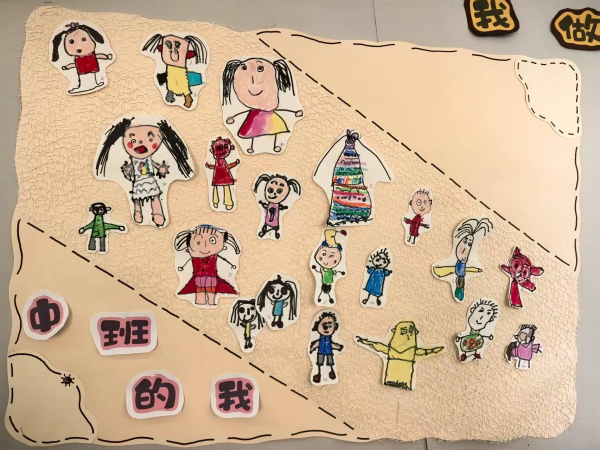 欣赏大班哥哥姐姐的自画像作品,感受作品的美感、激发幼儿创作兴趣。大班哥哥姐姐们的画,你们看一看,这些画美不美,哪里美?重点引导幼儿从作品的构图、色彩、背景的表现上来欣赏。请幼儿猜一猜小朋友手中的画画的是谁?你是怎样看出来的,引导幼儿理解自画像就是给自己画像,符合自己的特征。小朋友们能够运用绘画的形式表现自己的外部特征。
