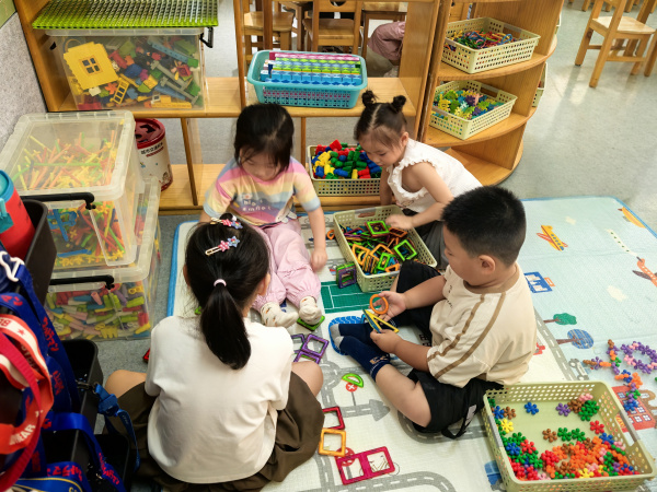 创设一个幼儿喜欢的、自由的、开放的环境,引导幼儿自主地进行活动,培养幼儿主动、活泼开朗的个性,促使幼儿乐意和他人交往,学习互助、合作和分享。我们以宽松的活动气氛,灵活多样的活动形式进行设计,材料投放满足幼儿发展的不同需要,促进每个幼儿富有个性的发展。