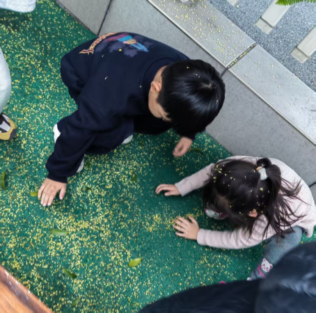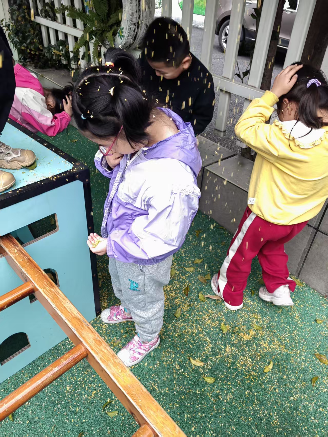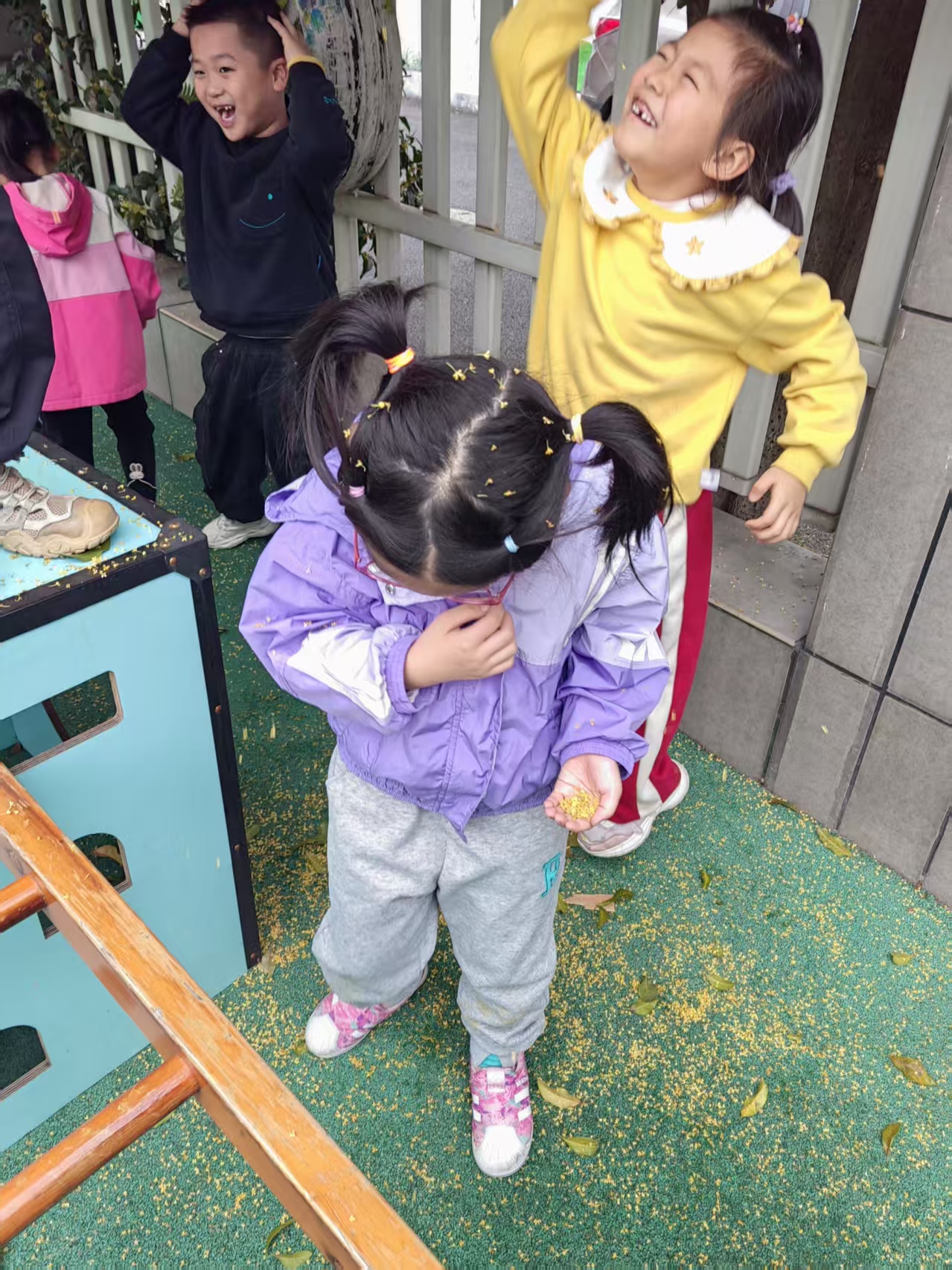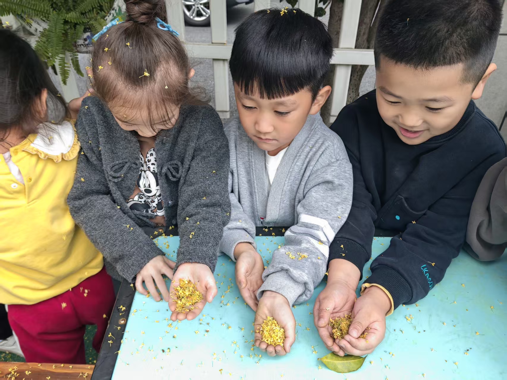 如“桂花为什么这么香 ?”"桂花可以用来做什么?”等问题。桂花作为一种具有独特魅力的花卉不仅有着美丽的外观和迷人的香气,还在饮食、文化等方面有着丰富的内涵。为了满足幼儿的好奇心,引导他们深入了解桂花,,让幼儿在观察、体验、创作等活动中,感受桂花的美好,丰富对自然和传统文化的认知。