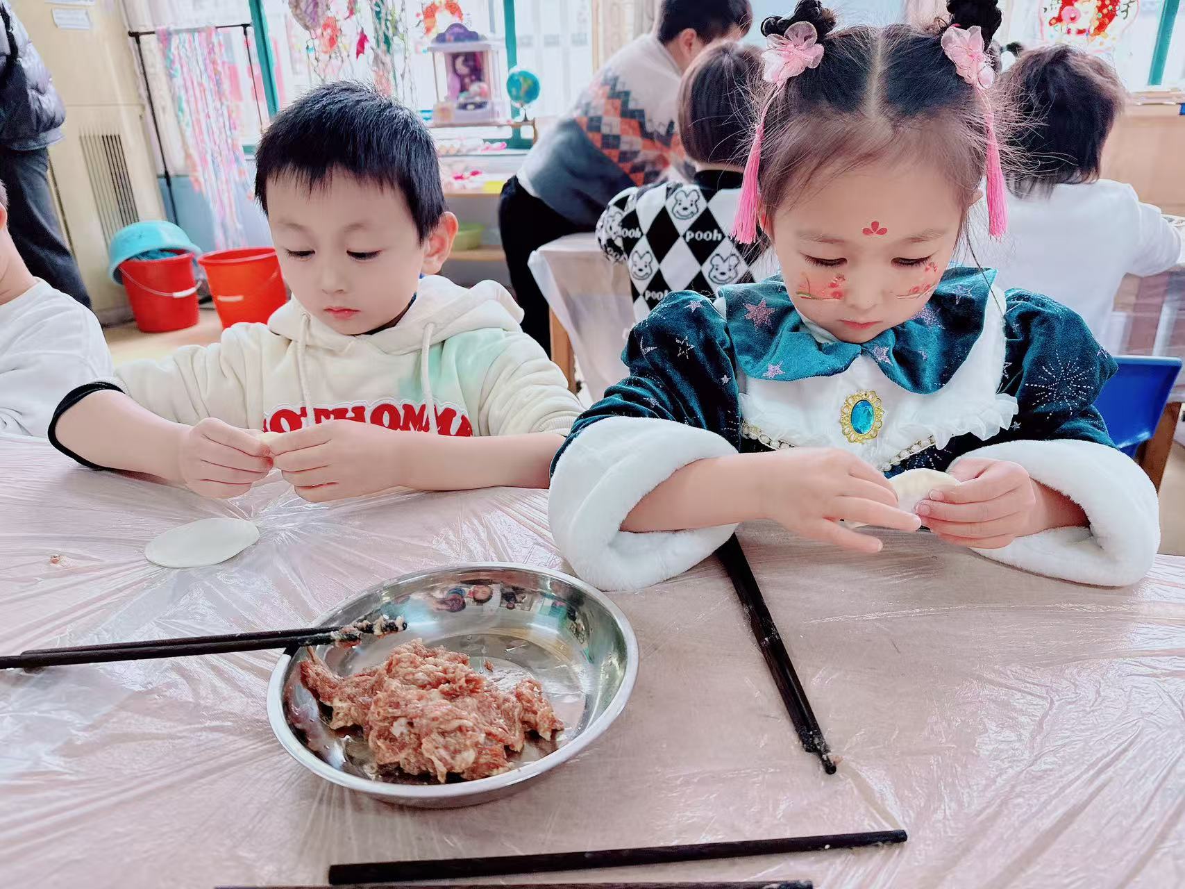 通过“庆元旦包饺子”这一活动,让幼儿了解元旦的由来与传统习俗,老师示范饺子的制作方法,小朋友们认真聆听和学习,通过亲手制作饺子的过程,增强幼儿的动手能力、团队协作能力,以及对传统文化的认同感,同时体验节日的欢乐氛围,吃上自己亲自包的水饺,好好吃!小朋友们说下次我还要包饺子。